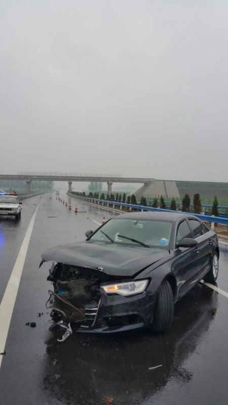 4月16日9时40分,周口交通管理支队高速事故大队民警刘勇、王岩接到报警称:一辆奥迪轿车在机西高速140KM(西半幅)处发生了撞护栏的交通事故。民警到达后发现,一辆奥迪轿车停行车道和超车道之间。车头面目全非,引擎盖向下弯卷,车后十几米路段上撒满了大大小小的塑料和金属碎片。车辆损失较大,幸运的是驾驶员没受伤。据了解,驾驶员姓张,张某说,他由郑州出发开车回老家周口,行驶到140KM时就撞了车,当时,路上下着大雨,家中有急事需要处理,他的时速为120码左右,行驶到140KM处时,路面有一大滩积水,他没减速,突然感觉后轮打滑了。结果车子失控,车头撞上了中央护栏,打了几个圈后停在停行车道和超车道之间。