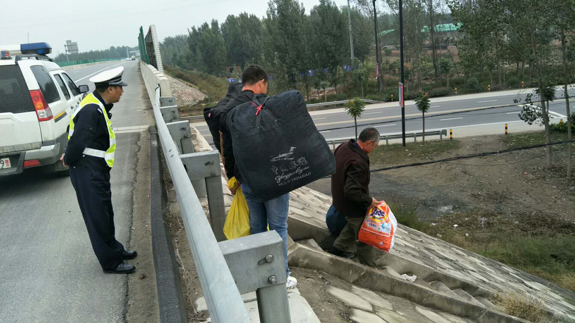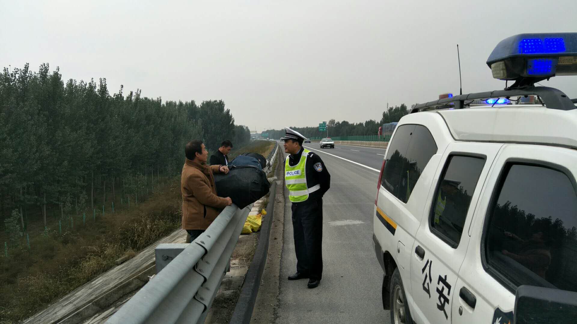 下午14点13分,我队执勤民警陈谢在所管辖区巡逻期间,发现郑民高速南半幅47公里处疑似有人影在晃动,民警立刻下车上前查看,果不其然,在护栏边有多名携带行李的人员在此处,经询问,原来几人是外出打工,想图个方便省事直接在高速上搭车到达目的地。我队民警得知前因后果,听得不禁冒冷汗,马上对几人进行一番安全教育,并告知高速公路上面禁止停车载客,几人想法太危险,为避免造成道路隐患,民警立即将几人劝离高速,明确告知几人不可再有此想法,为自身安全着想,需要按照正规途径坐车到达目的地!