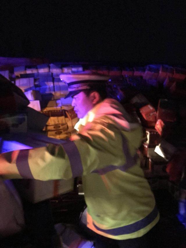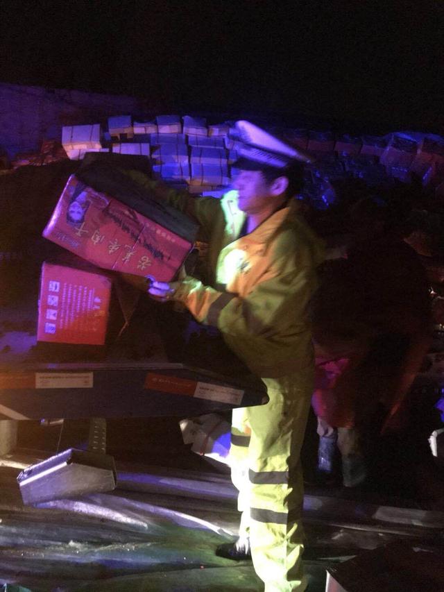 - 连霍高速开封段,一辆满载新疆红枣的货车,由于司机操作不当导致货物散落,开封高速支队政委张胜华带领民警石大志等人帮助司机倒货,使其损失减到最小,驾驶员感激万分!