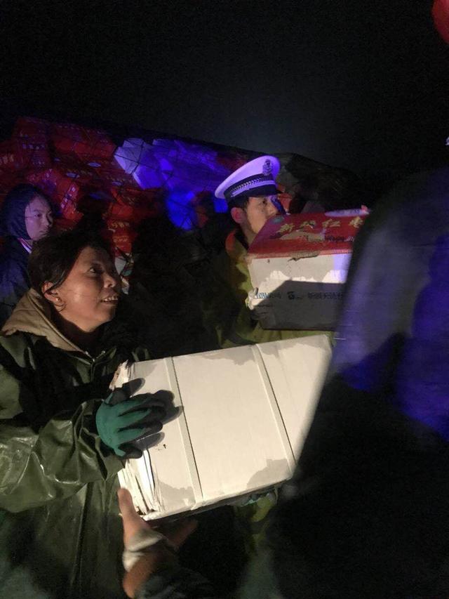连霍高速开封段,一辆满载新疆红枣的货车,由于司机操作不当导致货物散落,开封高速支队政委张胜华带领民警石大志等人帮助司机倒货,使其损失减到最小,驾驶员感激万分!